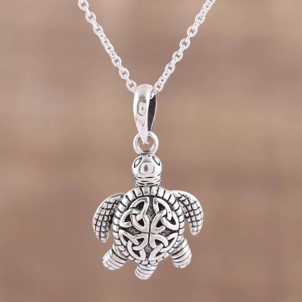 Sterling Silver Celtic Trinity Knot Turtle Pendant Necklace 'Trinity Turtle' Item ID: 2669924682