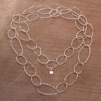 I really like this necklace! Because of my summer wardrobe I often wear it doubled (a clasp is necessary to do so) as opposed to full length, however, the sterling loops are surprisingly thin...I expected a heavier weight. My only concern is that, if caught on an article of clothing or something else, the links will easily bend out of shape.