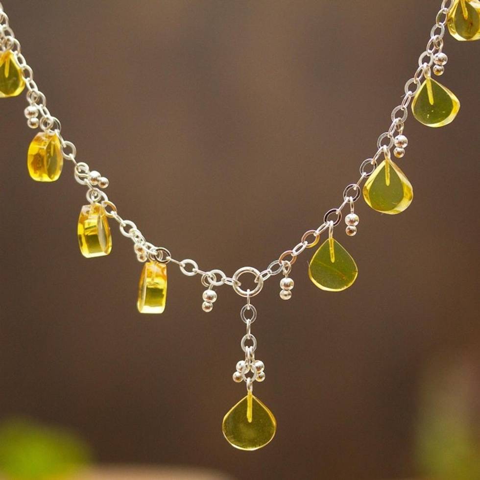 Sterling Silver Chain Necklace with Multiple Amber Pendants 'Simojovel Beauty' Item ID: 2671808033