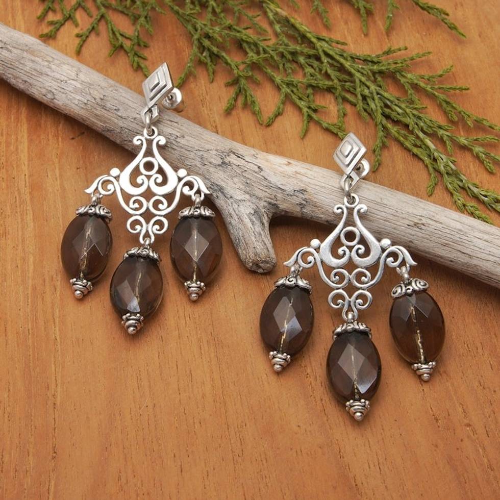 Sterling Silver Chandelier Dangle Earrings with Smoky Quartz 'Dinner Party' Item ID: 2671745254