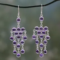 Sterling Silver Chandelier Earrings with Amethyst Cabochons 'Ecstatic Purple' Item ID: 2669924345