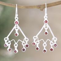 Sterling Silver Chandelier Earrings with Natural Garnet Gems 'Red Caresses' Item ID: 2669956009