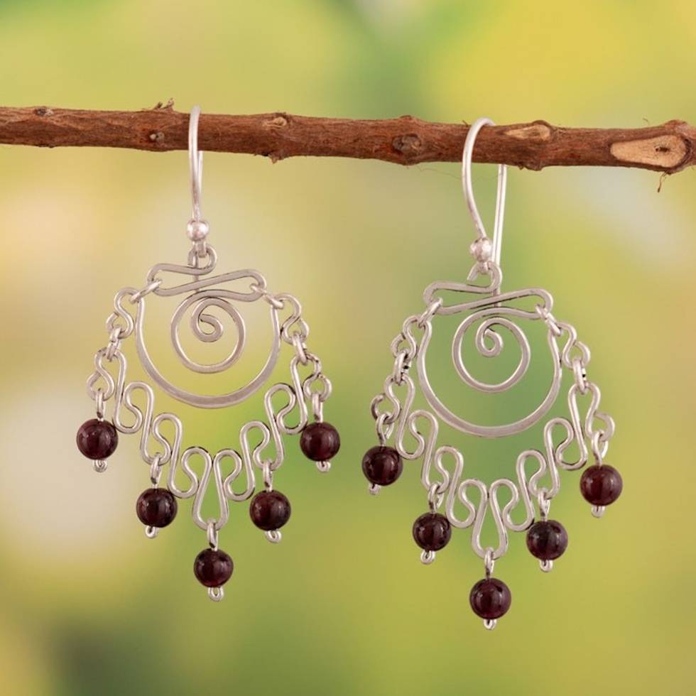 Sterling Silver Chandelier Earrings with Natural Garnet Gems 'Passion Gala' Item ID: 2671698040