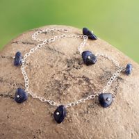 Sterling Silver Charm Anklet with Sodalite Stone from Peru 'Blue Sunny Days' Item ID: 2671698092