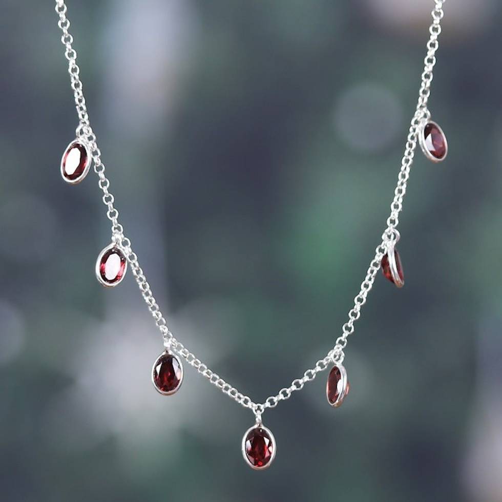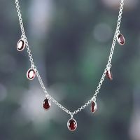 Sterling Silver Charm Necklace with 7-Carat Garnet Jewels 'Dancing Devotion' Item ID: 2671625289