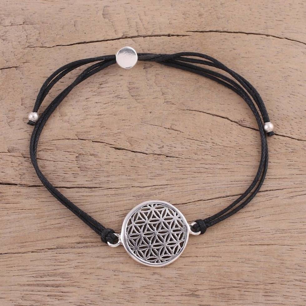 Sterling Silver Circular Bracelet in Black from India 'Starry Seeds in Black' Item ID: 2671790967