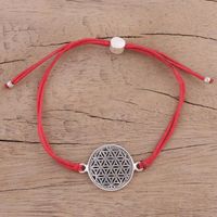 Sterling Silver Circular Pendant Bracelet in Red from India 'Starry Seeds in Red' Item ID: 2671791669
