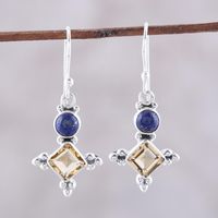 Sterling Silver Citrine and Lapis Lazuli Dangle Earrings 'Shimmering Star' Item ID: 2671792197