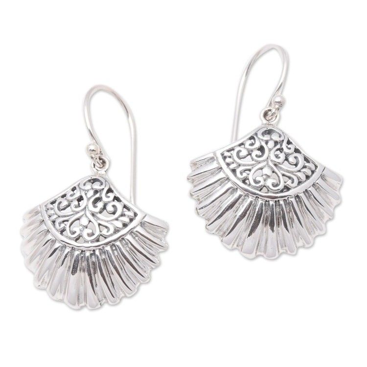 Sterling Silver Clam Shell Dangle Earrings from Bali 'Gleaming Clam Shells' Item ID: 2671737758