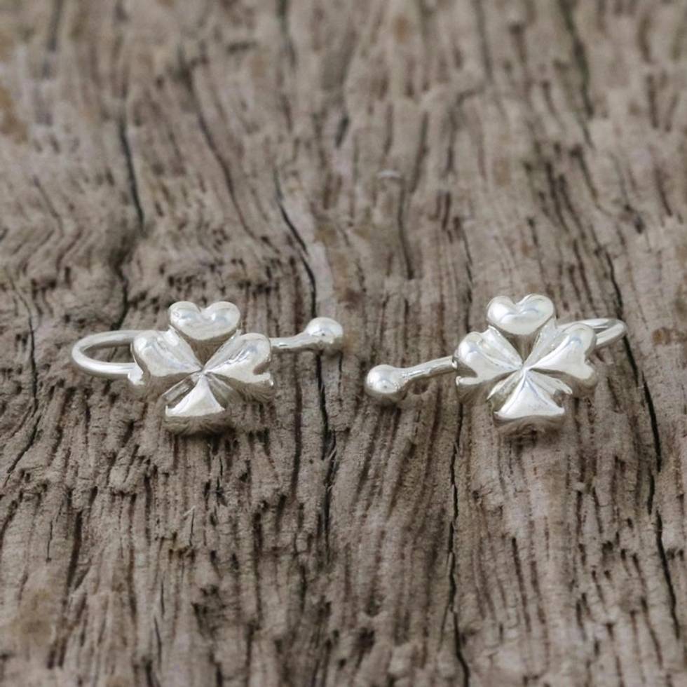 Sterling Silver Clover-Shaped Ear Cuffs from Thailand 'Shining Luck' Item ID: 2671800818
