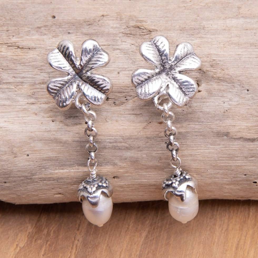 Sterling Silver Cloverleaf Dangle Earrings with Grey Pearls 'Cloverleaf' Item ID: 2671763391