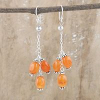Sterling Silver Cluster Dangle Earrings with Carnelian Gems 'Royal Fruits' Item ID: 2671787064