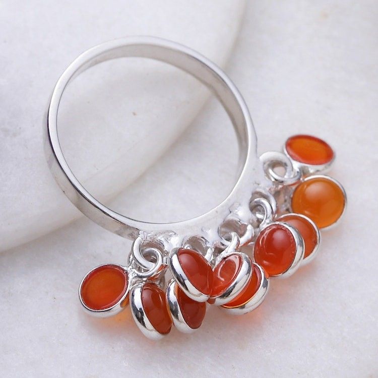Sterling Silver Cluster Ring with Ten Natural Carnelian Gems 'Fire Style' Item ID: 2671667767