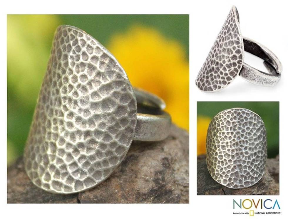 If you are trying to find that bold ring that chants beauty, beauty beauty....look no further Achara is so talented and has created yet another enchanting piece in "The Silver Sun." I also purchased the "Hill Tribe Sun." I wanted a silver cuff style ring, that I could wear on my middle finger and that made my hand pop with a sassy kind of elegance.....and so I had to buy two of Achara's cuff rings each unique in their own way. With the silver sun ring the design focuses on the front and the Hill Tribe Sun not only has design on front but on the back where the cuffs meet....what a fantastic idea n creation. I luv how the ring doesn't slide around, it literally hugs my finger securely and with comfort. Money well spent, truly a gorgeous style Achara thx U!!!!!