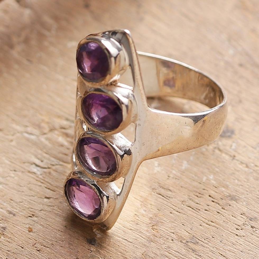 Sterling Silver Cocktail Ring with 4-Carat Amethyst Gems 'Glorious Wisdom' Item ID: 2671783047
