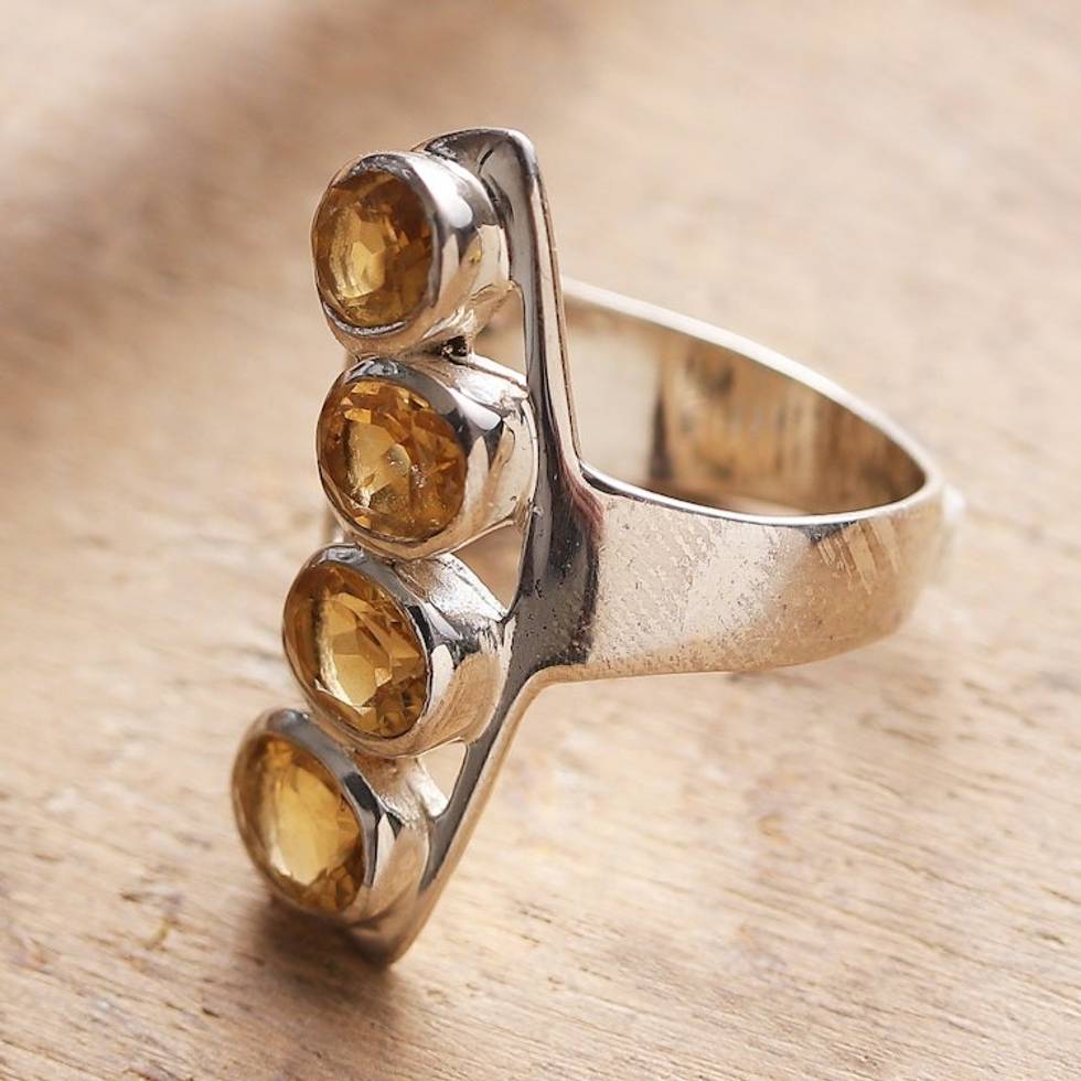 Sterling Silver Cocktail Ring with 4-Carat Citrine Gems 'Glorious Joy' Item ID: 2671782177