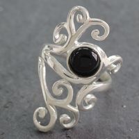 Sterling Silver Cocktail Ring with Black Onyx from India 'Black Jasmine' Item ID: 2671793776