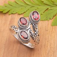 Sterling Silver Cocktail Ring with Faceted Garnet Stones 'Flaming Roots' Item ID: 2671763241