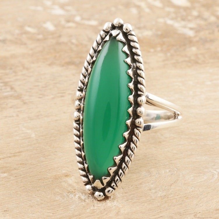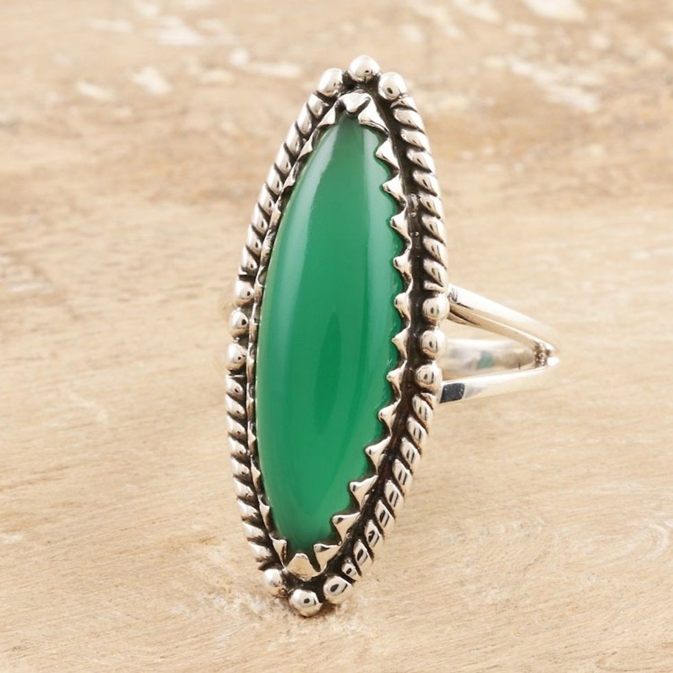 Sterling Silver Cocktail Ring with Green Onyx Cabochon 'Green with Envy' Item ID: 2671789583