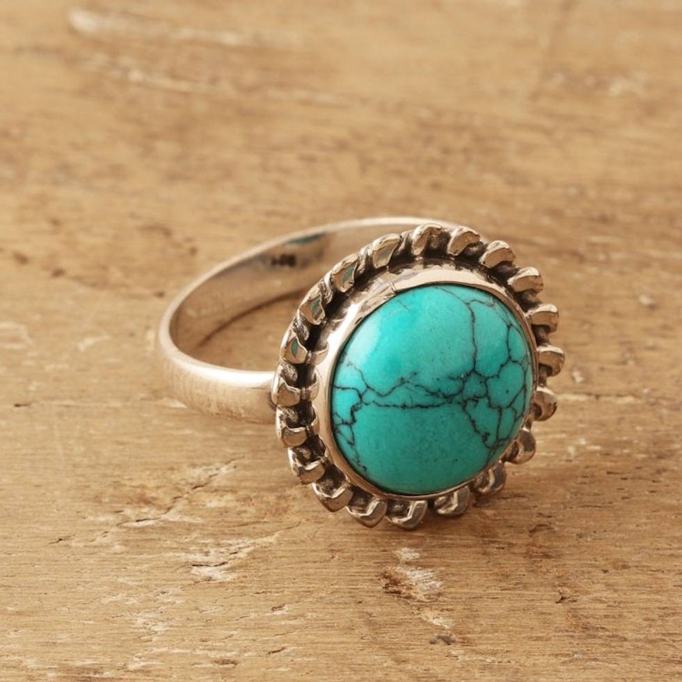 Sterling Silver Cocktail Ring with Reconstituted Turquoise 'Sea Bloom' Item ID: 2669943768