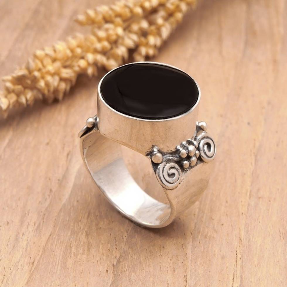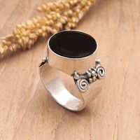 Sterling Silver Cocktail Ring with Traditional Motifs 'Night Lagoon' Item ID: 2671763168