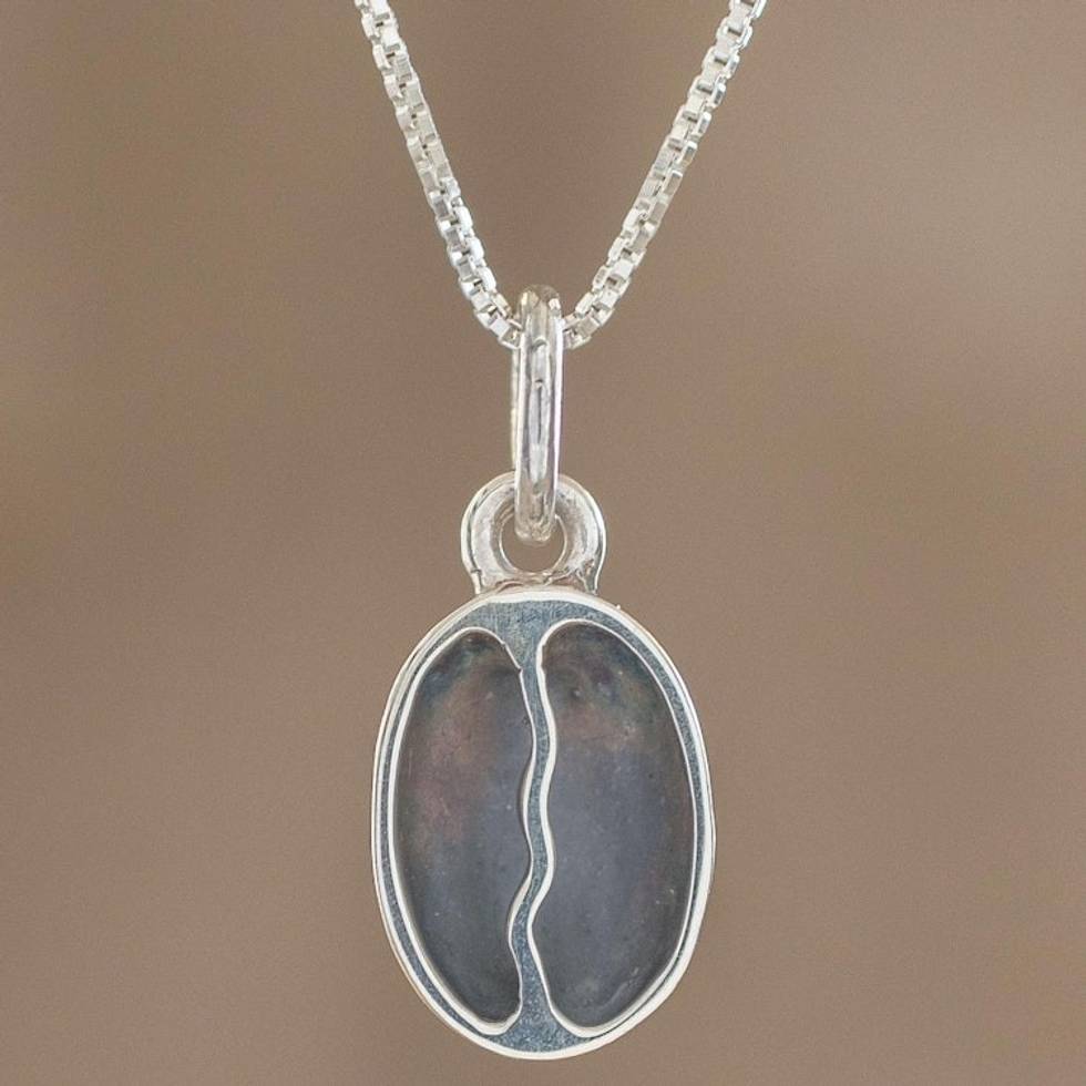 Sterling Silver Coffee Bean Pendant Necklace from Guatemala 'Raining Coffee' Item ID: 2671777040