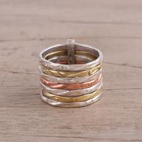 Sterling Silver Copper and Brass Band Ring from India 'Classic Alliance' Item ID: 2669956069