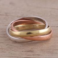 Sterling Silver Copper and Brass Band Ring from India 'Classic Trio' Item ID: 2669953217