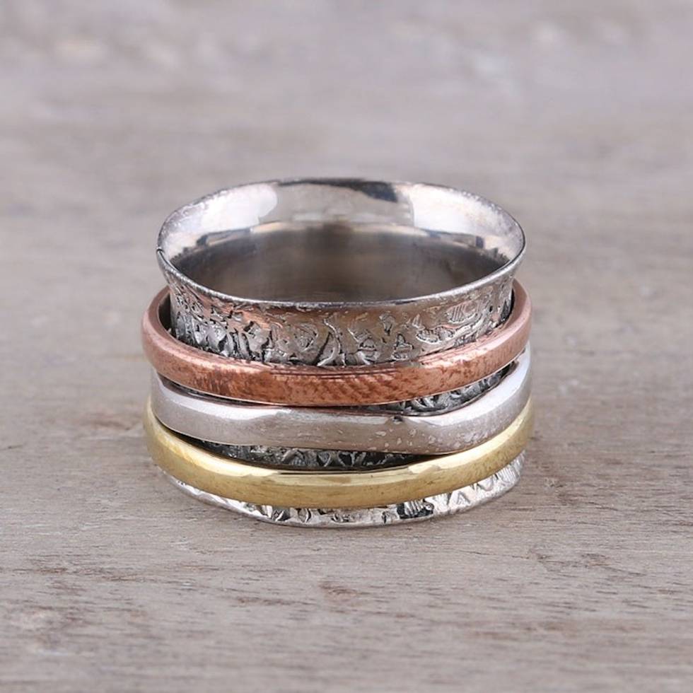 Sterling Silver Copper Brass Meditation Spinner Ring 'Trio Treasure' Item ID: 2671667423