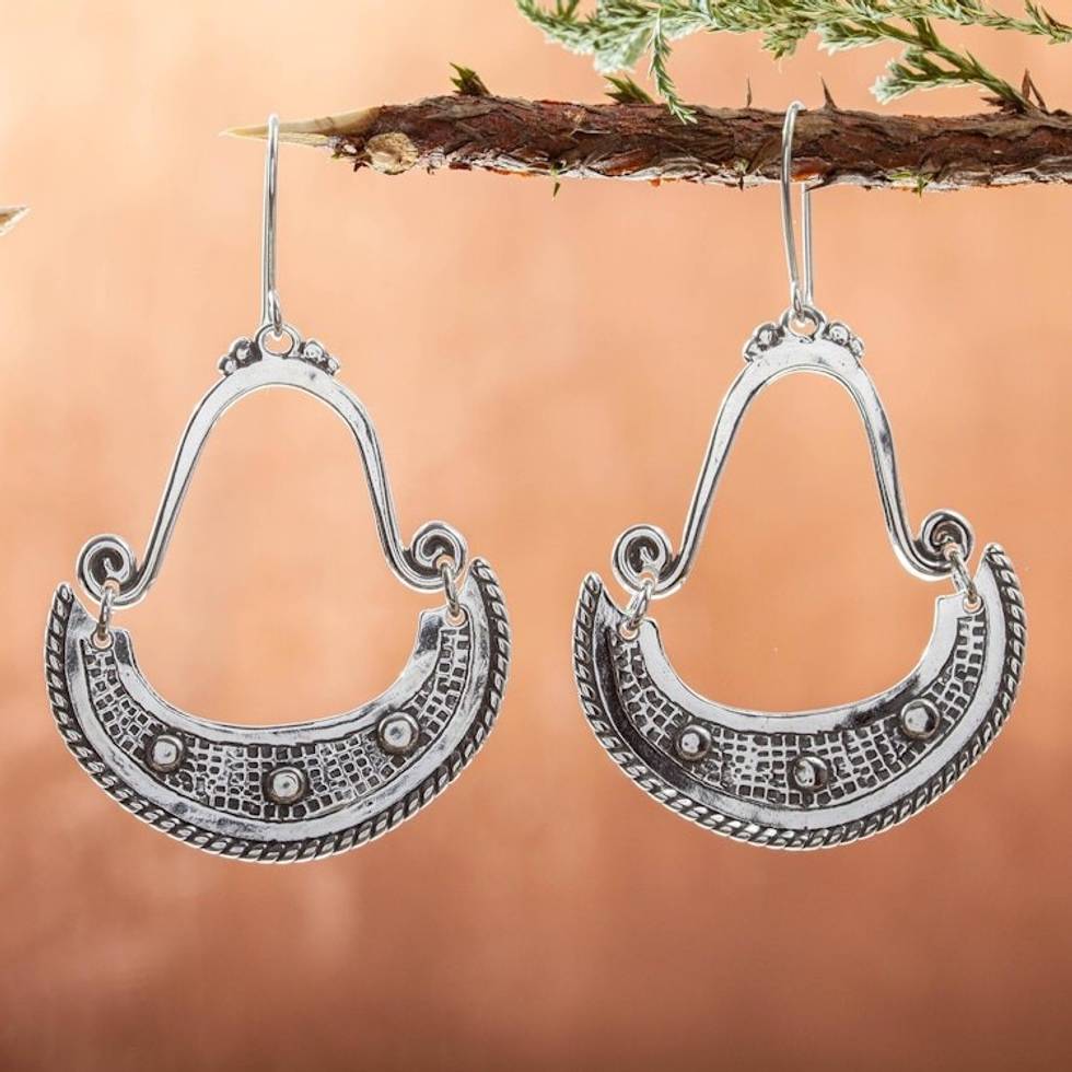 Sterling Silver Crescent Dangle Earrings 'Tarascan Crescents' Item ID: 2671808546
