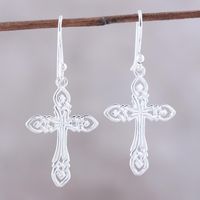 Sterling Silver Cross Dangle Earrings from India 'Delightful Crosses' Item ID: 2669925296