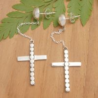 Sterling Silver Cross Dangle Earrings in a Polished Finish 'Faith Spheres' Item ID: 2671763167