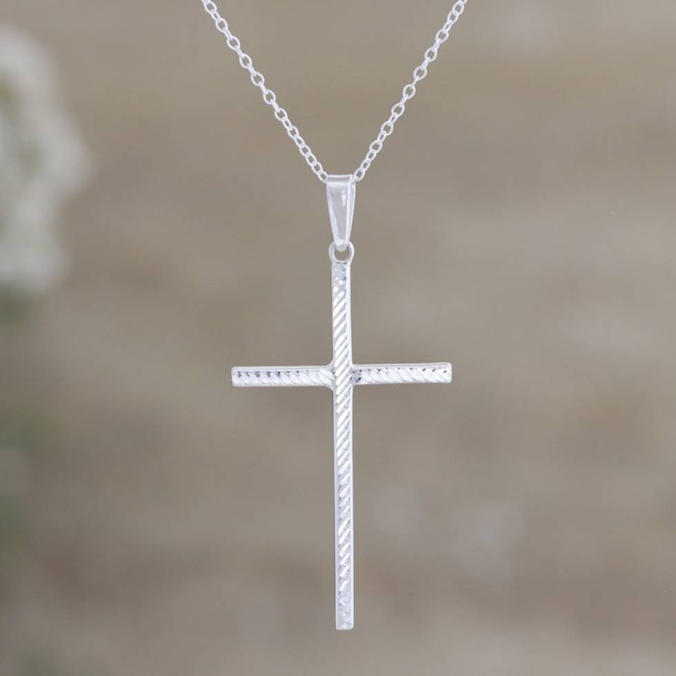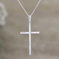 Sterling Silver Cross Pendant Necklace Crafted in India 'Luminous Hope' Item ID: 2671625132
