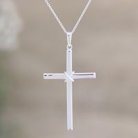 Sterling Silver Cross Pendant Necklace from India 'Luminous Peace' Item ID: 2669943741
