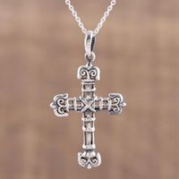 Sterling Silver Cross Pendant Necklace from India 'Bound in Faith' Item ID: 2671790429