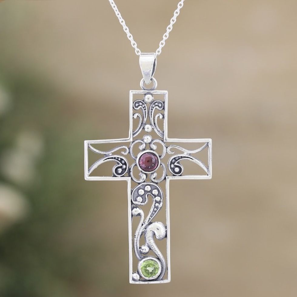 Sterling Silver Cross Pendant Necklace with Garnet Peridot 'Hope Cross' Item ID: 2669943553