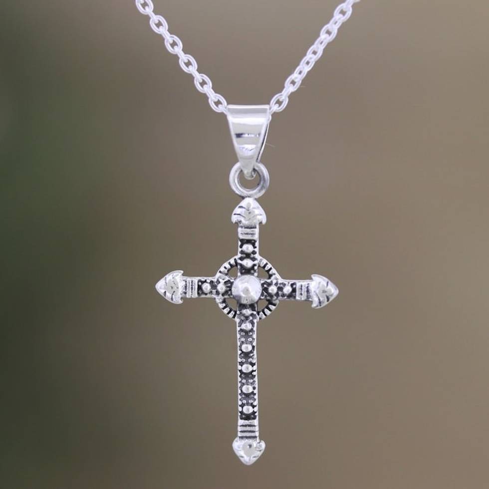 Sterling Silver Cross Pendant Necklace with Polished Finish 'Precious Faith' Item ID: 2671625268