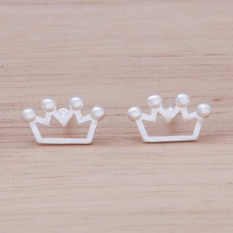 Sterling Silver Crown Stud Earrings from Thailand 'Delightful Crowns' Item ID: 2676651603