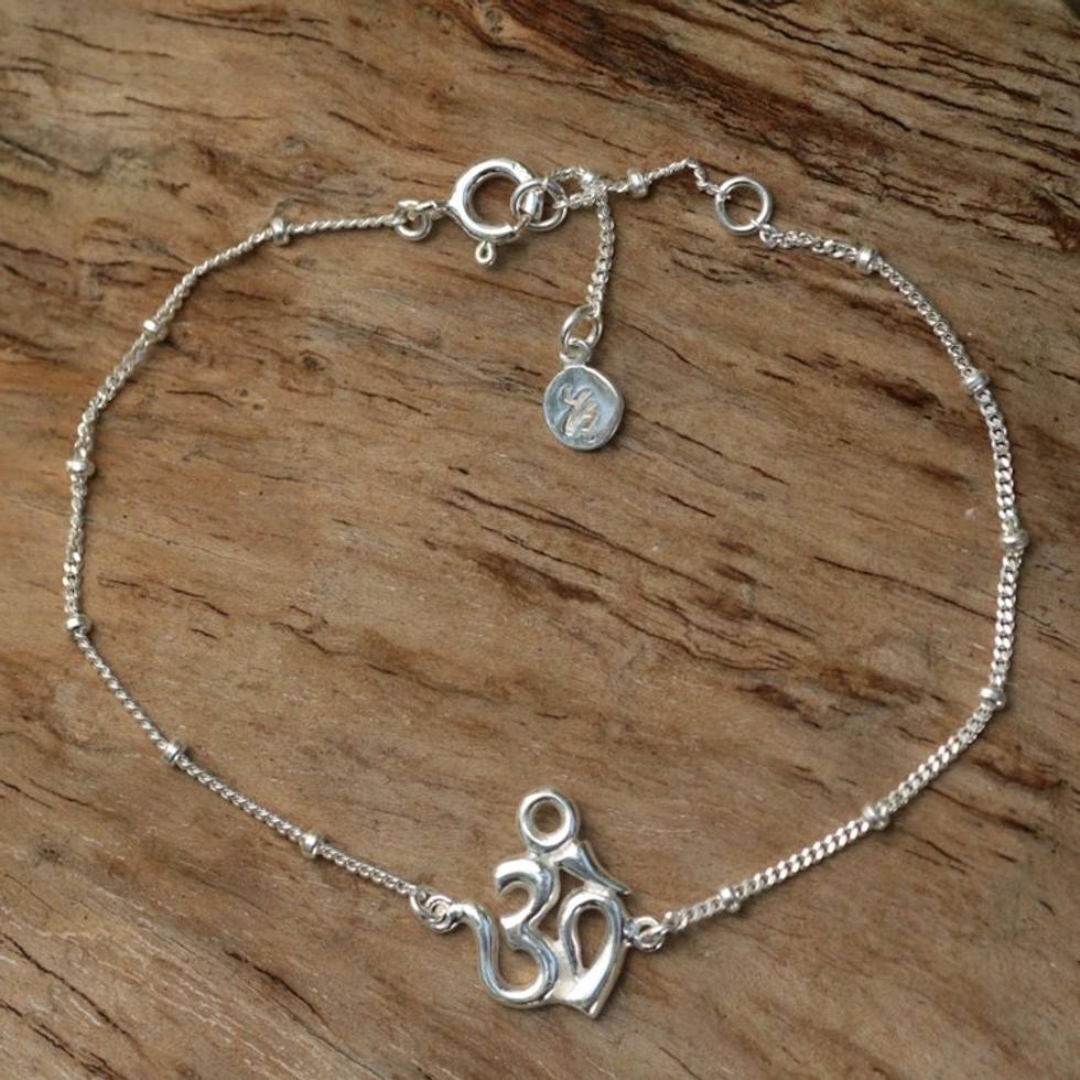 Sterling Silver Cuban Link Chain Bracelet with Om Symbol 'Centered Om' Item ID: 2671702626