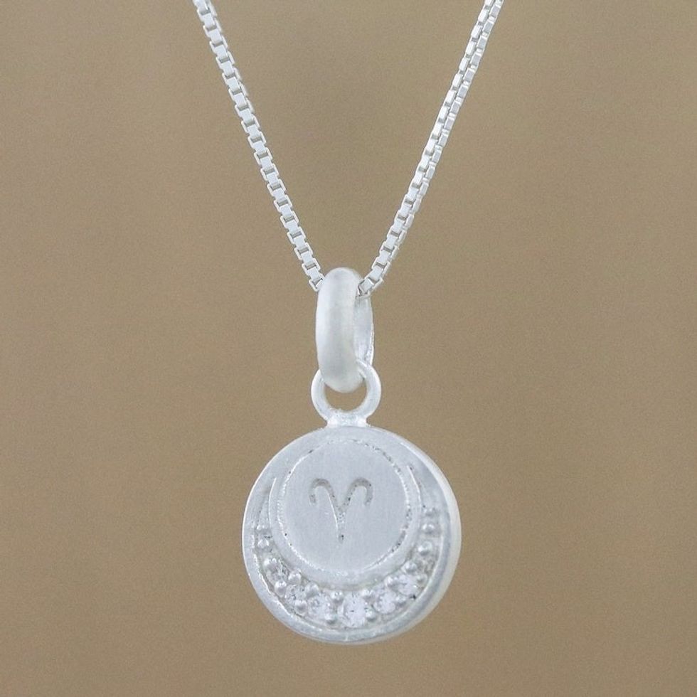 Sterling Silver Cubic Zirconia Aries Necklace from Thailand 'Zodiac Charm Aries' Item ID: 2671801524