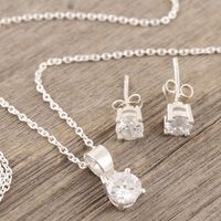 Sterling Silver Cubic Zirconia Pendant Necklace Earrings Set 'Timeless Shine' Item ID: 2669924122