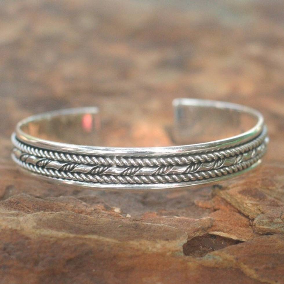 Sterling Silver Cuff Bracelet 'Bamboo Illusions' Item ID: 2671803094