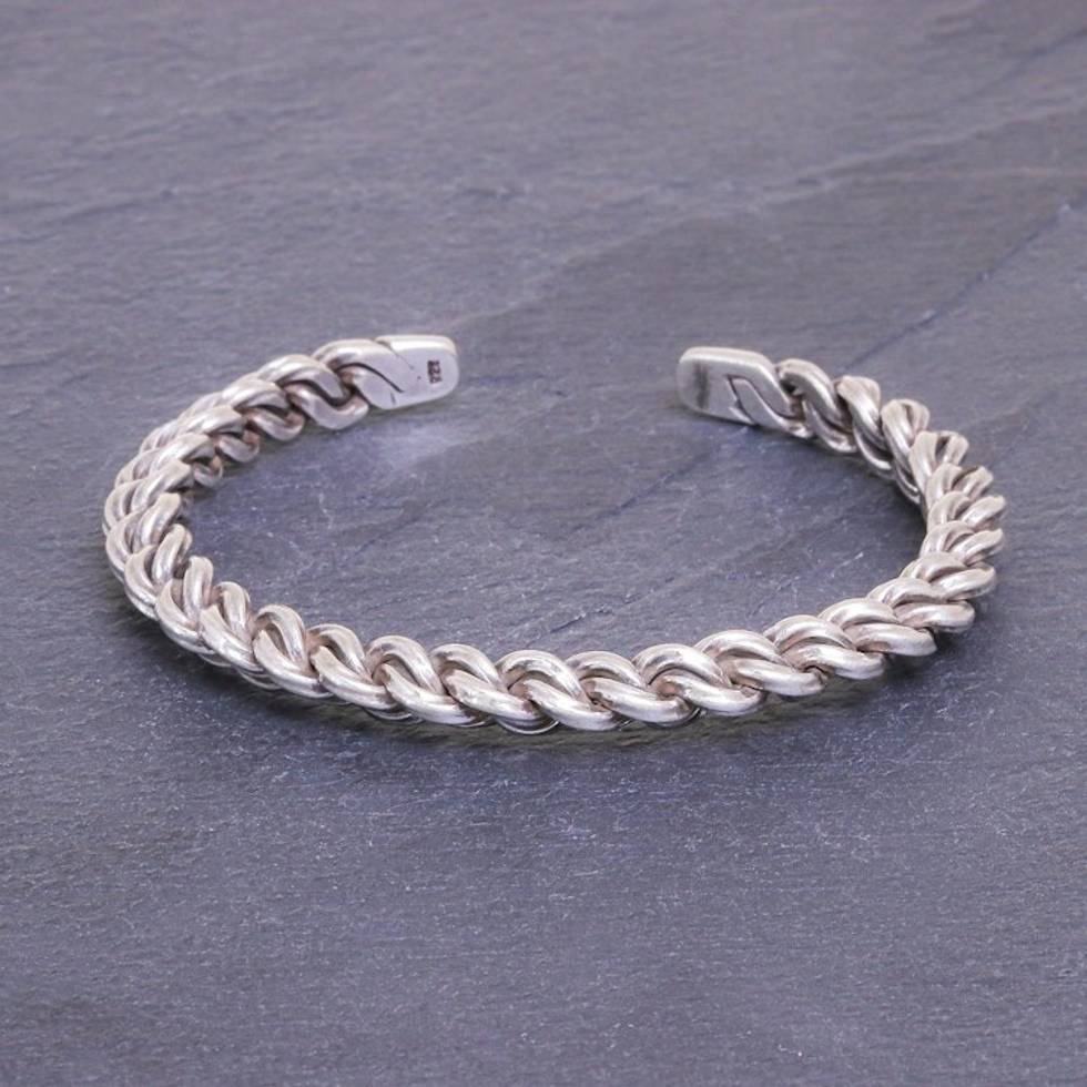 Sterling Silver Cuff Bracelet Linked Chain Motif 'Midnight Unity' Item ID: 2671800036