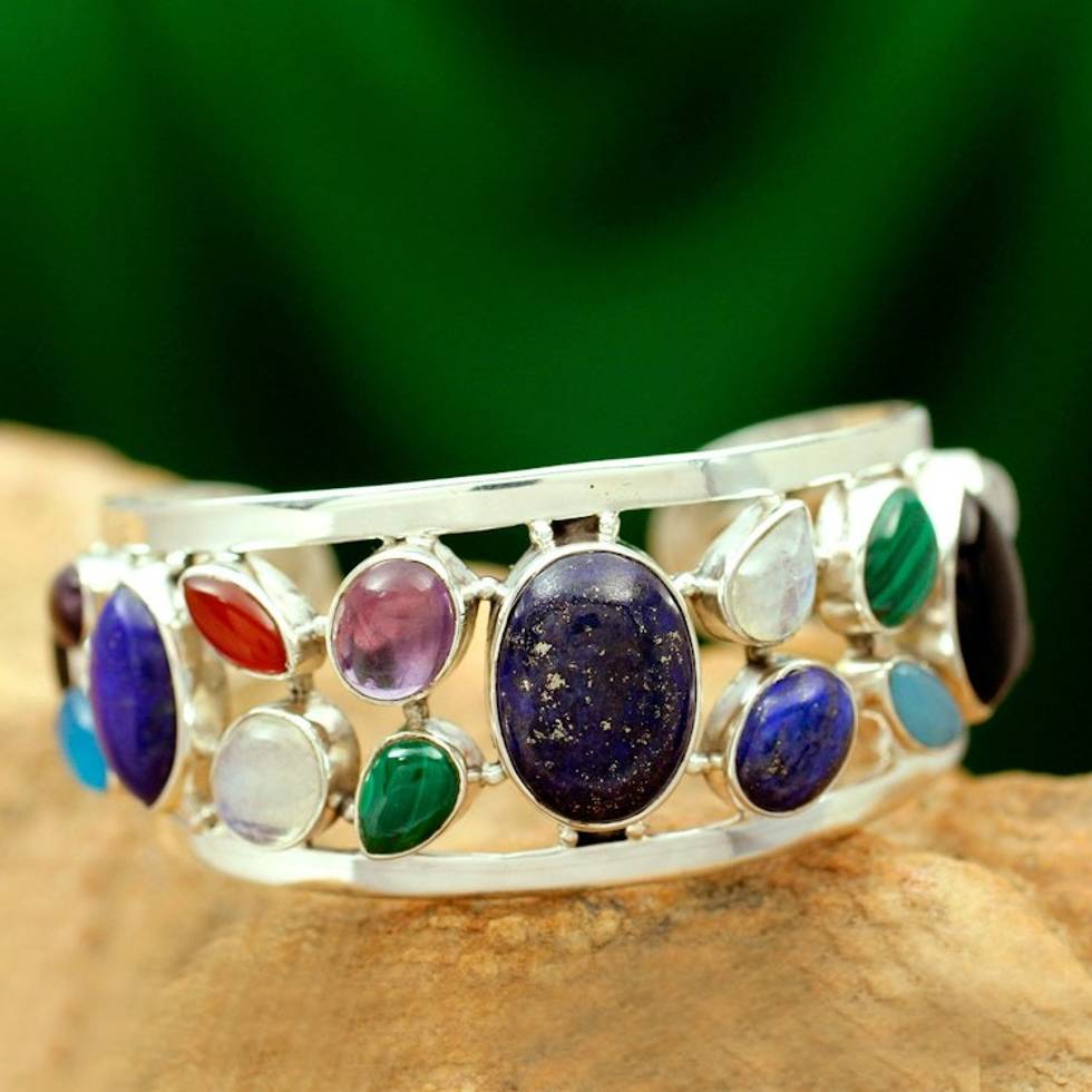 Sterling Silver Cuff Bracelet Multigemstone Jewelry 'Colors of Life' Item ID: 2671618837