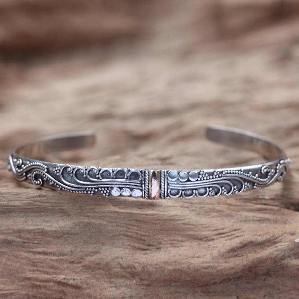 Sterling Silver Cuff Bracelet with 18k Gold Accent 'Nature's Muse' Item ID: 2671702577