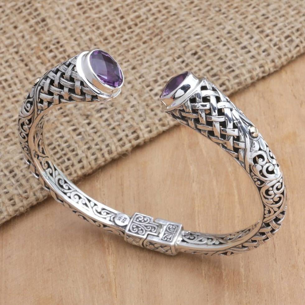 Sterling Silver Cuff Bracelet with Faceted Amethyst Stones 'Purple Heritage' Item ID: 2671748441