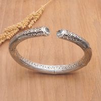 Sterling Silver Cuff Bracelet with Faceted Blue Topaz Gems 'Loyal Bali' Item ID: 2671763388