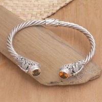 Sterling Silver Cuff Bracelet with Faceted Citrine Stones 'Citrine Dragonflies' Item ID: 2671748620