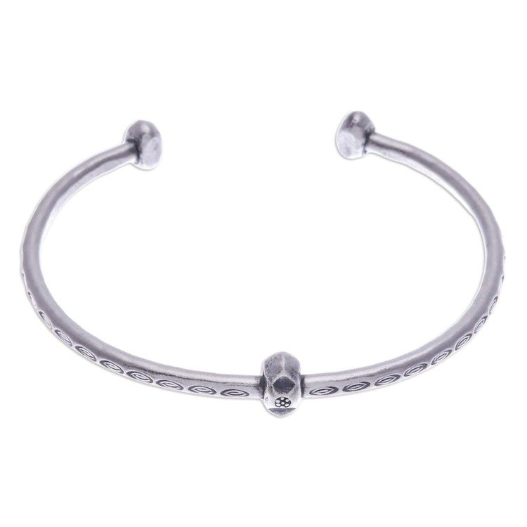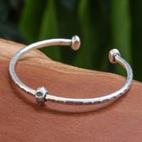 Sterling Silver Cuff Bracelet with Hill Tribe Pendant 'Charming Core' Item ID: 2671798207