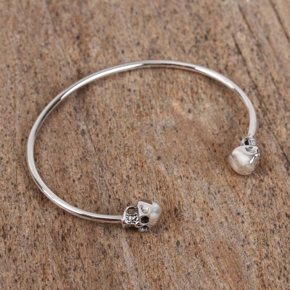Sterling Silver Cuff Bracelet with Skulls from Mexico 'Skulls of Tradition' Item ID: 2669931848